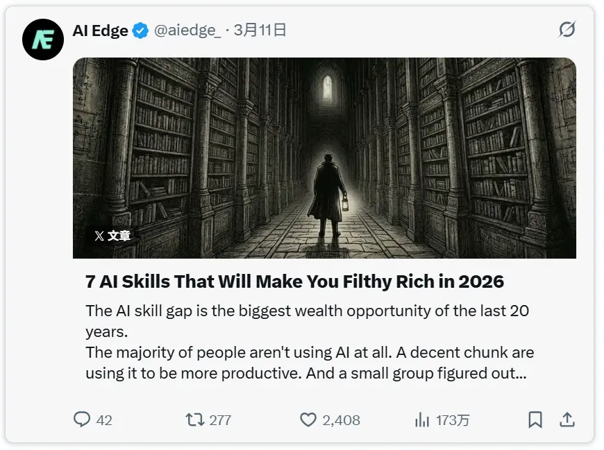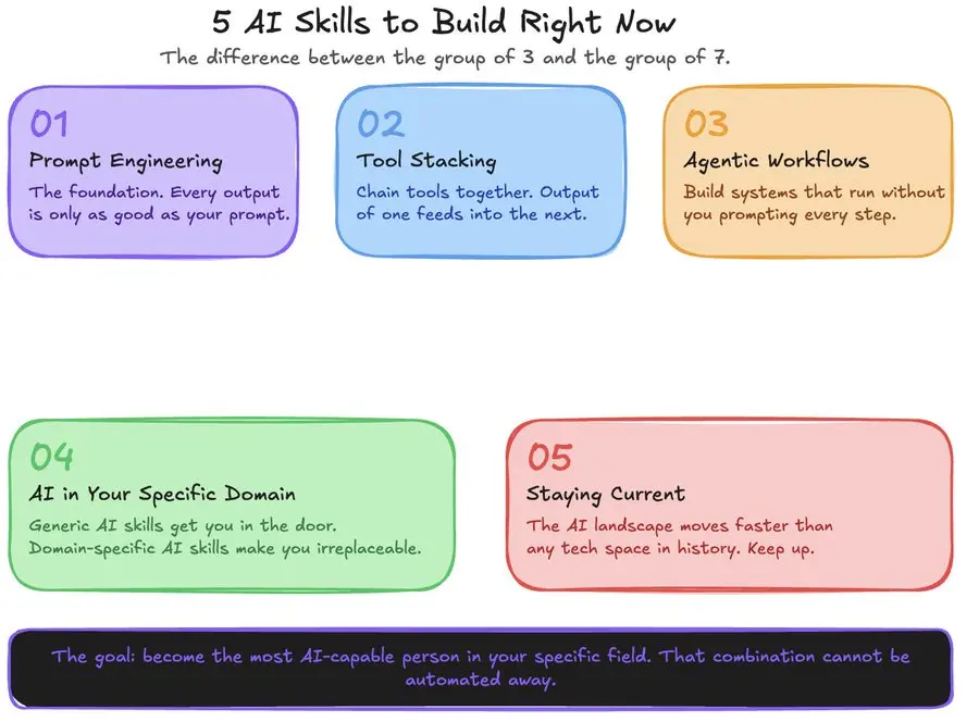 这是基础。能够持续从人工智能中提取真正有用输出的人,其价值已经超过了大多数随意使用这些工具的白领。务必先掌握这项技能。