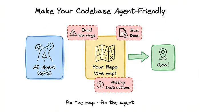 把你的编码代理想象成GPS导航器——只有当地图准确时它才能正常工作。给它一个充满缺失文档、被抑制的构建警告和未记录的怪异行为(例如,用@mac而不是:mac)的仓库,它会自信地把你带进死胡同。