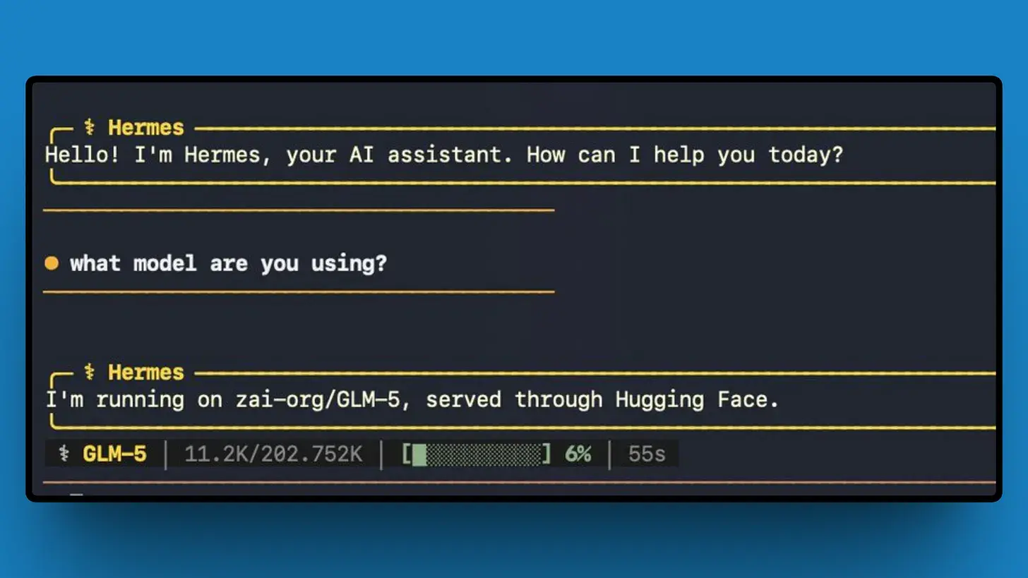 在模型方面,Hermes 通过 Nous Portal 作为单一提供商端点连接到 400 多个模型,Hugging Face 作为一级提供商得到支持,具有完整的 HF 推理 API 集成、内置模型选择器和设置向导。