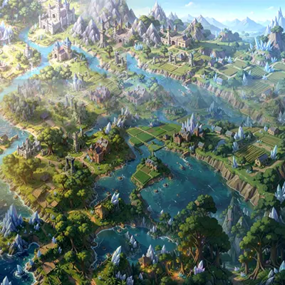 --prompt "Isometric medieval village with a marketplace and fountain, same art style and perspective as reference" \