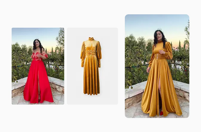 我虚拟试穿的第一件是来自Sister Jane的天鹅绒连衣裙。我很喜欢它,但我很少穿黄色。因为没有其他颜色可选,我别无选择,只能试试看。