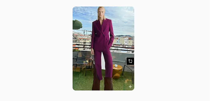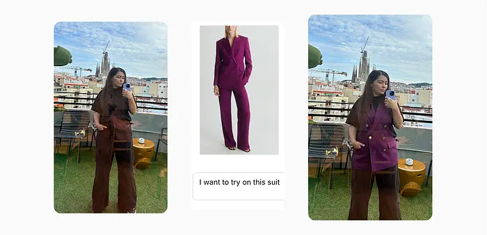这件来自Mango的西装在模特身上看起来太好看了,我想看看它穿在我身上会怎样。不幸的是,结果与现实相差甚远。它只把外套弄对了,除了我的没有袖子,甚至纽扣也不同。所以我又试了一次,要求它分析并修复问题。
