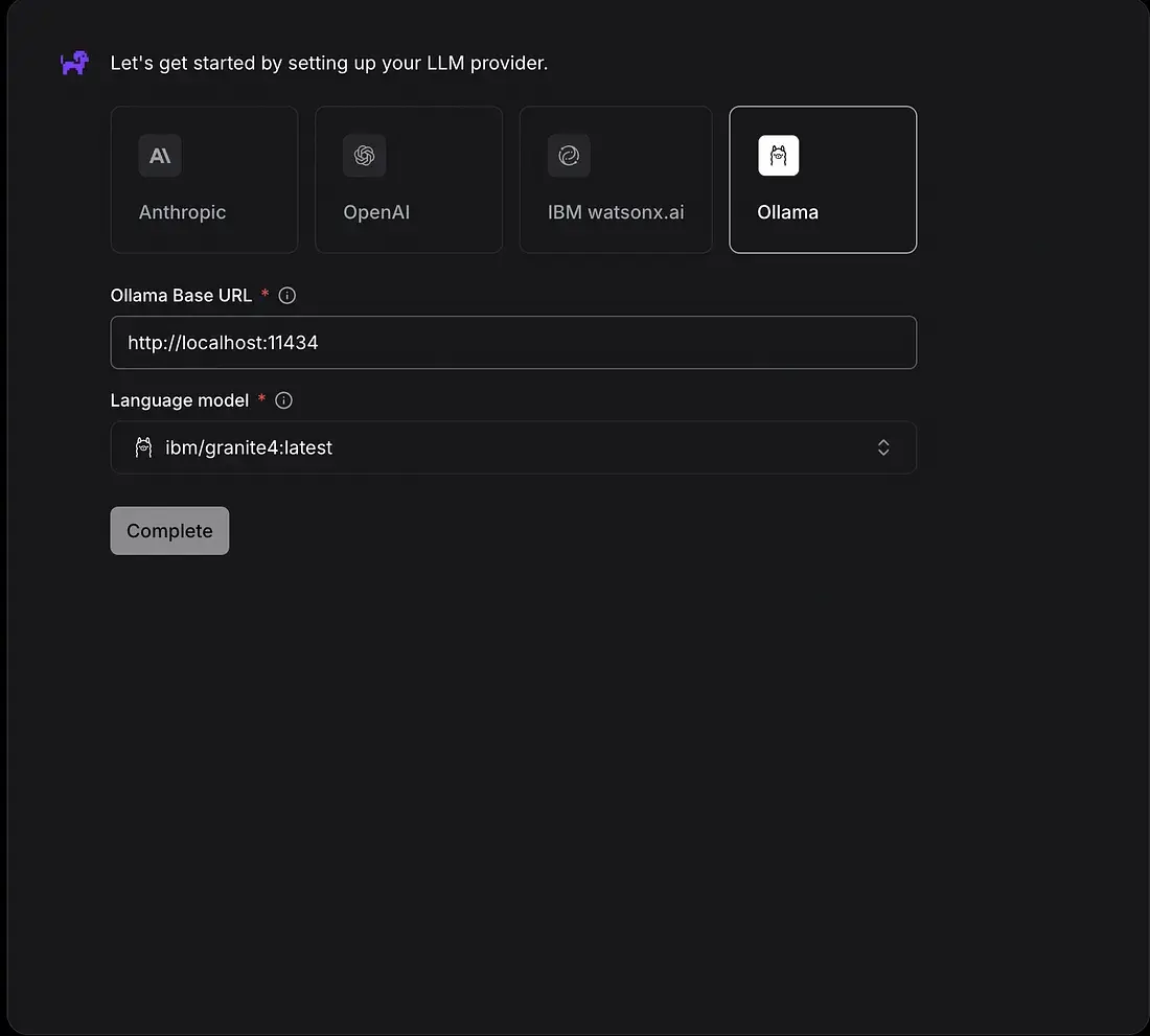 # LLM提供商配置。提供商可以是 "anthropic"、"watsonx"、"ibm" 或 "ollama"。