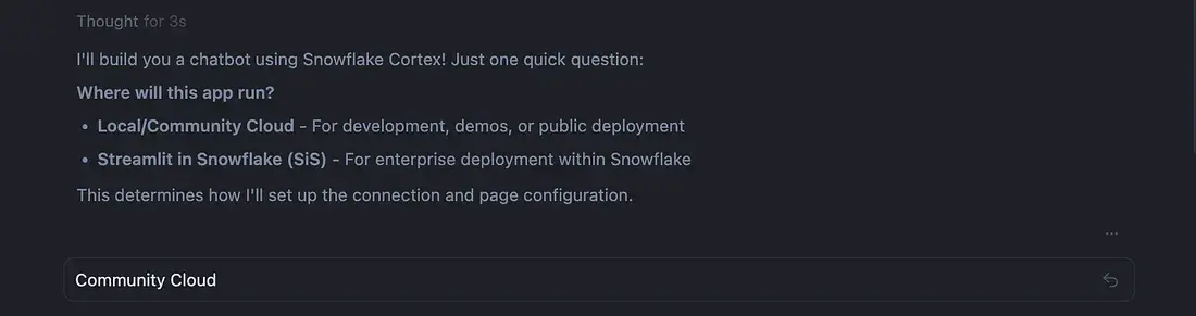 - "哪个 LLM?"(只有当你提到 AI 时) → Cortex 或 OpenAI