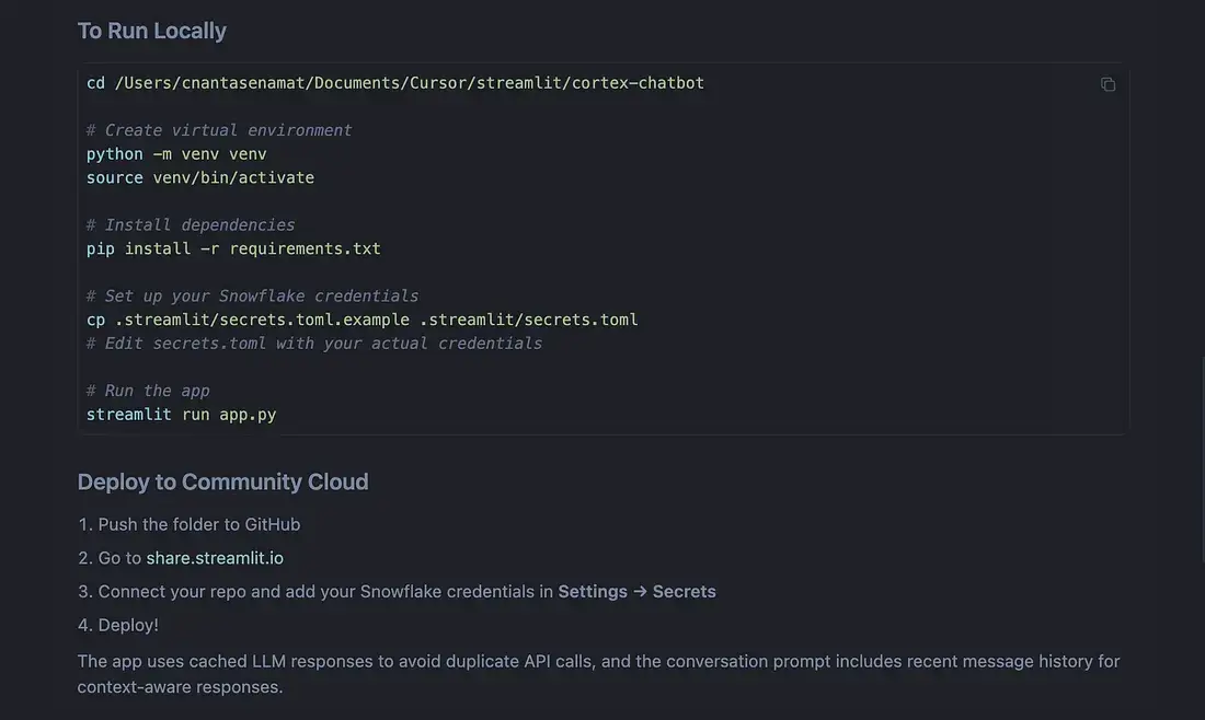 AGENTS.md 中的每个模式都已在生产中验证。AI_COMPLETE 函数、通用连接模式、流式聊天界面:所有这些都来自在不同部署环境中解决现实问题的经验。