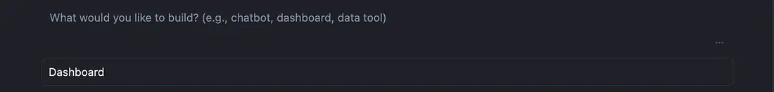 - "你想构建什么?" → 聊天机器人、仪表板、数据工具