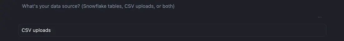 - "你的数据源是什么?" → CSV、Snowflake、APIs