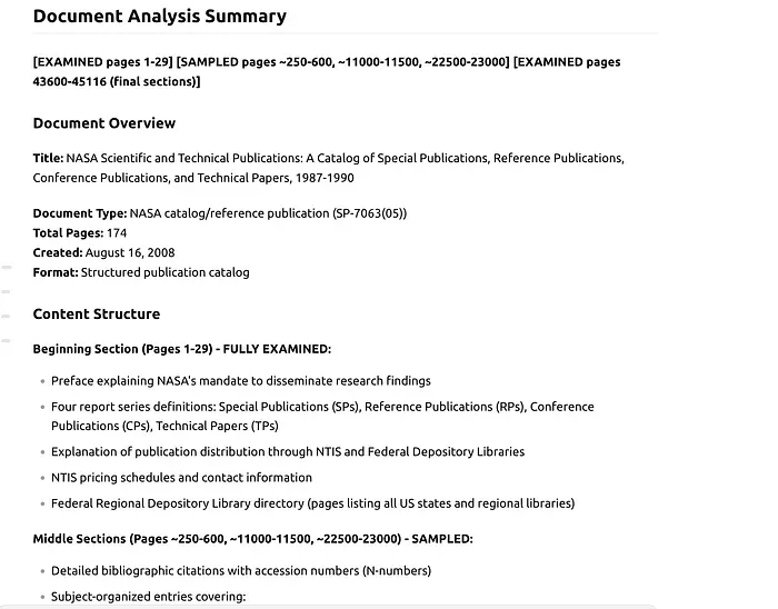 Every section represented在后续案例研究中,我们提供了一份 174 页的 NASA 技术报告。