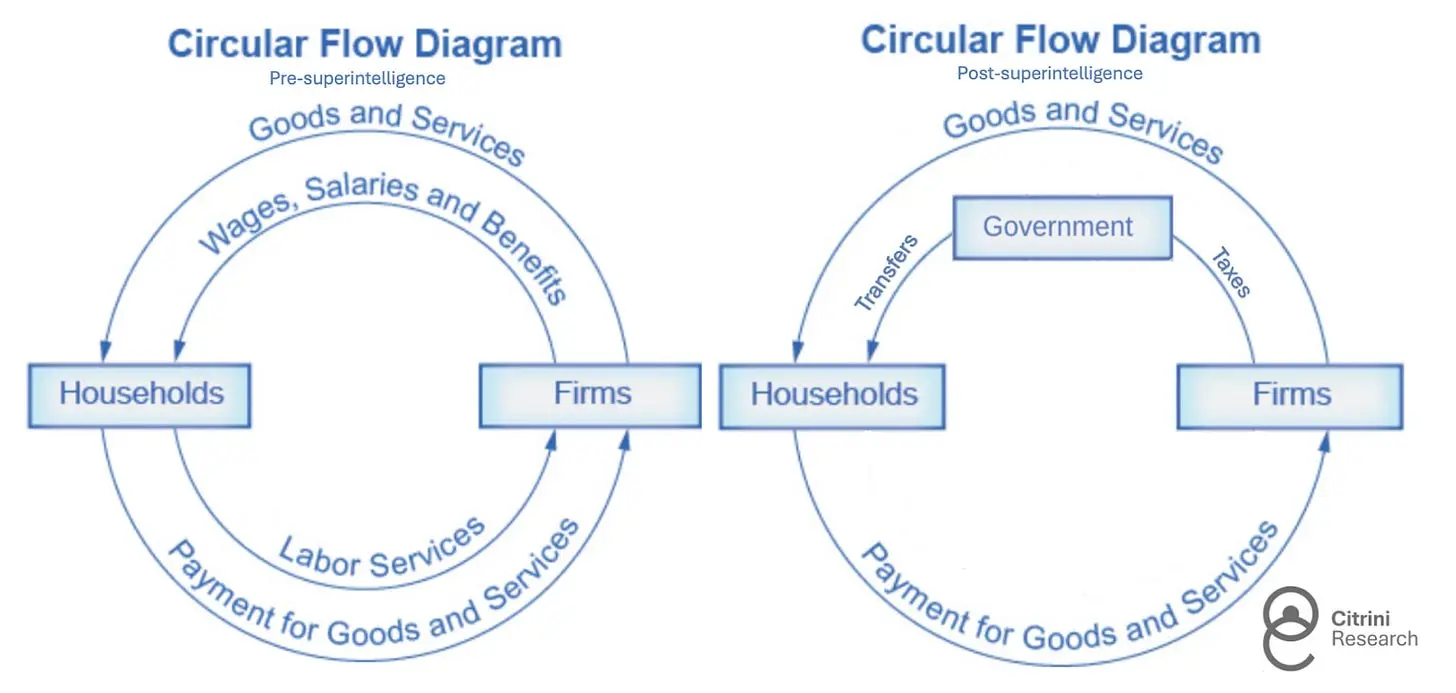 AI变得更好、更便宜。公司裁员,然后使用节省购买更多AI能力,这使它们能够裁员更多。被置换工人花费减少。向消费者销售东西的公司销量更少、变弱,并投资更多于AI以保护利润率。AI变得更好、更便宜。