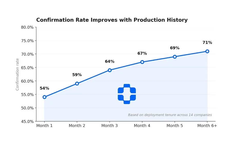 但最重要的数字并不准确,而是学习循环。每个已解决的事件、每个已批准的修复、每个模拟结果都会保留在上下文图中。系统每次使用都会变得更好,因为它保留了产生每个结果的推理过程,而不仅仅是结果本身。