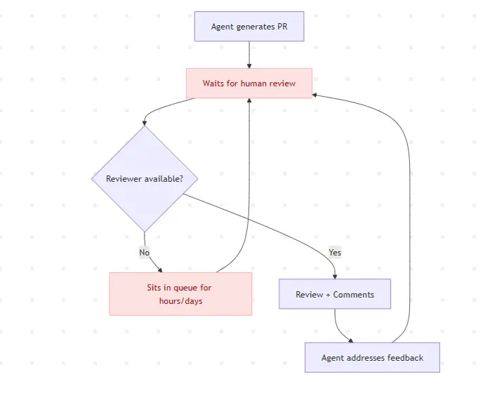 想想看。一个代理每天会生成 500 个 PR。你的团队也许只能审查 10 个。审查队列会堆积。这不是值得优化的瓶颈。这是一个假瓶颈,只存在于我们强加给机器工作流的人类仪式之上。