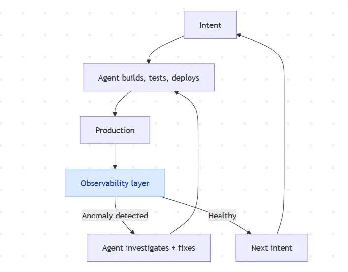 可观测性层成为驱动整个循环的反馈机制。 它不是末端的某个阶段。它是整个系统的连接组织。
