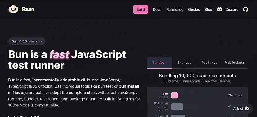 最初以“快速运行时”为名的产品,悄然发展成为一款强大的生产工具,集打包器、转译器、包管理器和运行时于一体,并将性能作为其不可妥协的目标。