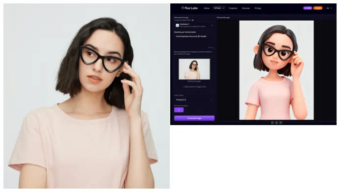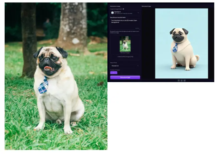打开 图像生成器 并切换到图生图工具。上传你的照片,选择你喜欢的图像模型,然后指示 AI 使用此提示创建一个可爱的 3D 模型: