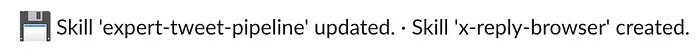 Hermes Agent 最突出的功能是其记忆和自我学习循环。它会根据我们的对话自动创建技能。如下所示,我正在试验让它研究并在 X 上发帖,它自己创建了多个技能。