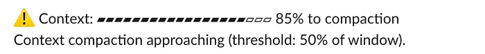 Hermes Agent 关于上下文窗口状态的警告也很有帮助(对高级用户而言),这样你可以在需要时手动压缩上下文。
