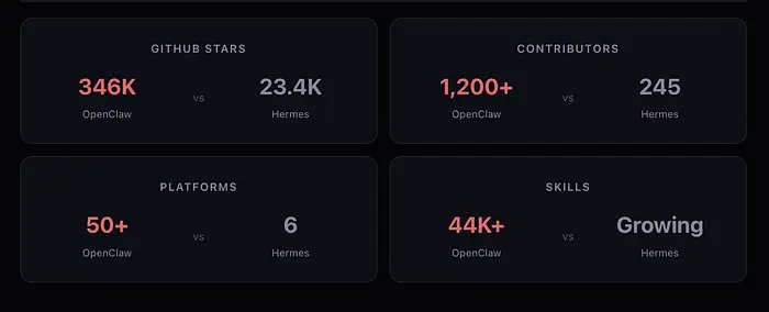 - 缺点: 它目前更适合单智能体使用。如果你需要一群相互交谈的智能体"团队",Hermes 还没达到那个程度。