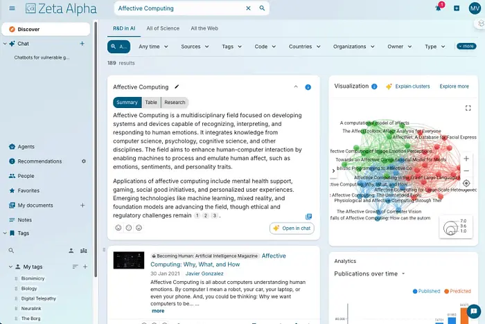 让我们谈谈Zeta Alpha。这不是一些带有圆角按钮和多巴胺滴注UI的嬉皮士SaaS应用,它是为研究服务的,但你仍然可以自己玩。尽管他们已经存在几年,他们有我之前说的胆量来尝试基于AI的用户界面。