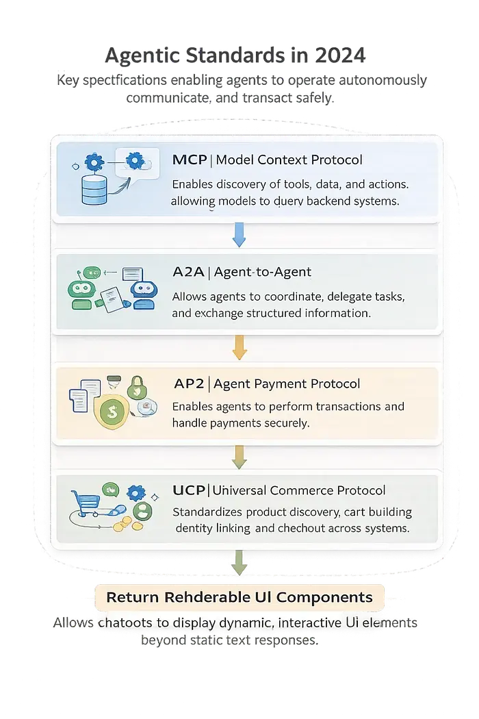 - UCP(通用商务协议)谷歌尝试标准化代理如何发现产品、构建购物车、链接身份和跨系统执行结账。它是代理的商务基础设施,不是人类的。