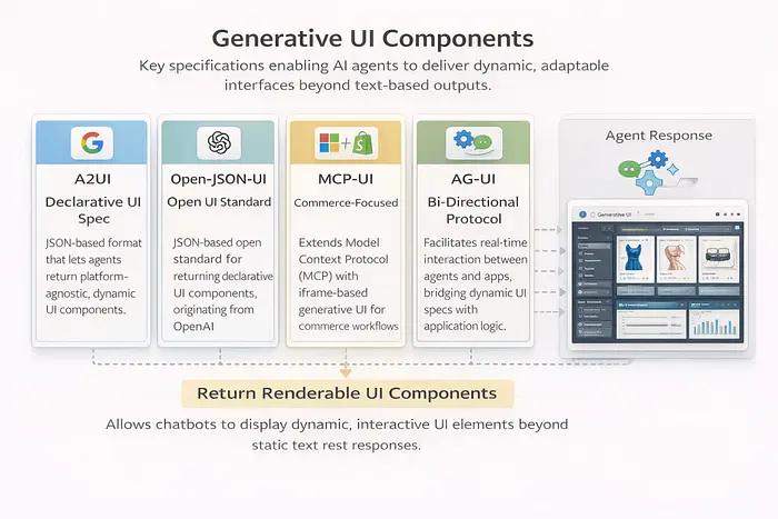 那些都没有定义UI——它们定义了能力。要使生成式UI成为现实,代理需要一种返回结构化、可渲染界面组件的方式,而不仅仅是文字。