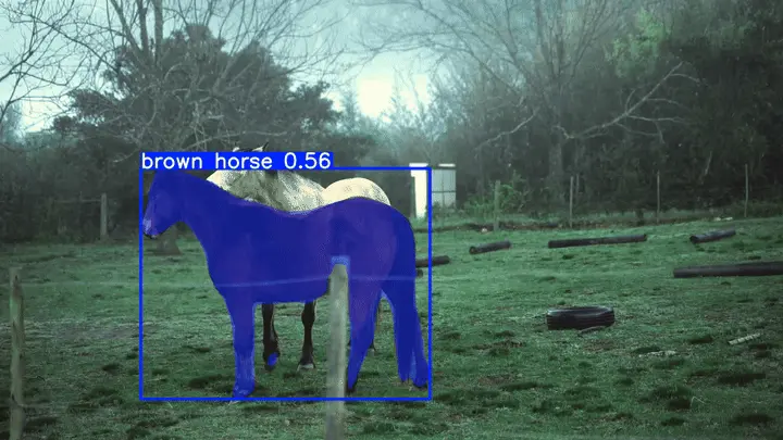 yolo predict model=yoloe-26x-seg.pt source=video_examples/yoloe/5206818-hd_1920_1080_25fps.mp4 show=True half=True retina_masks=True classes="brown horse" conf=0.4